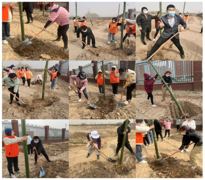春风吹新绿,植树正当时。植树现场一派热火朝天的劳动景象,今年会jinnianhui官网师生热情高涨、干劲十足,在学院领导的带领下,大家分工协作、默契配合,扶正树苗、挥锹铲土、填坑夯苗、提桶浇水,每道工序有条不紊,每个环节衔接有序。不到一个小时,19颗树苗就栽植完毕,为春日的校园增添了一抹盎然生机。