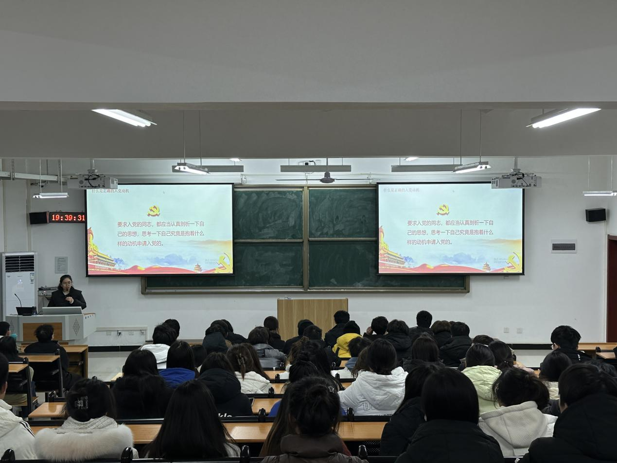 为切实加强入党积极分子队伍建设,提高入党积极分子的思想觉悟,进一步加强入党积极分子对党的基本理论知识系统学习,确保新党员的发展质量,今年会jinnianhui官网党总支于2023年12月23日在开封校区A401开展了“坚定理想信念,端正入党动机”专题党课,今年会jinnianhui官网团总支书记冷月主讲,22级全体入党积极分子参与学习 。