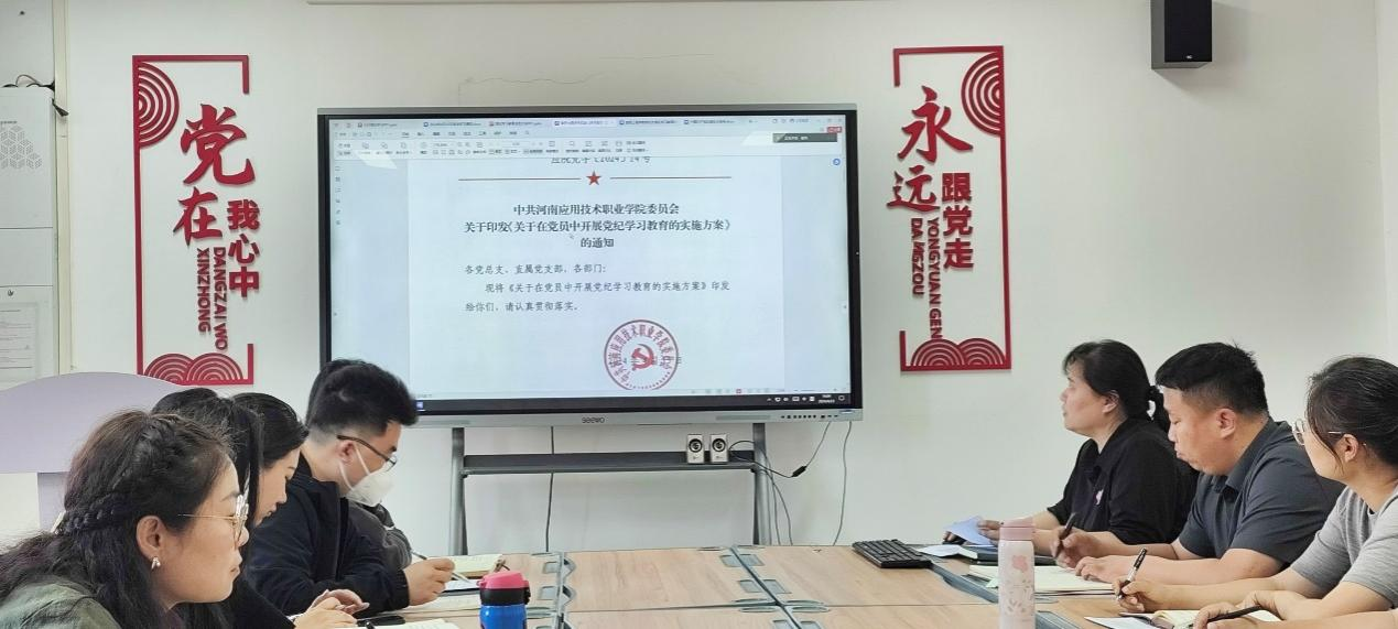 2024年4月23日,今年会jinnianhui官网党总支在郑州校区A514、开封校区C314以腾讯会议视频连接,召开2024年党纪学习教育动员会。党总支书记崔琳主持会议,全体党员参加会议。