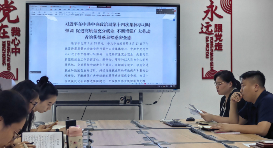 会中,崔琳书记重点领学了2024-5-28习近平在中共中央政治局第十四次集体学习时强调促进高质量充分就业不断增强广大劳动者的获得感幸福感安全感。促进高质量充分就业,是新时代新征程就业工作的新定位、新使命。要坚持以人民为中心的发展思想,全面贯彻劳动者自主就业、市场调节就业、政府促进就业和鼓励创业的方针,持续促进就业质的有效提升和量的合理增长,不断增强广大劳动者的获得感幸福感安全感。随后,全体教师集中观看中共中央纪律检查委员会、中华人民共和国国家监察委员会网站的“纪法小课·青年干部警示动画”,提醒和教育青年干部遵守党纪国法,保持清正廉洁的政治本色。