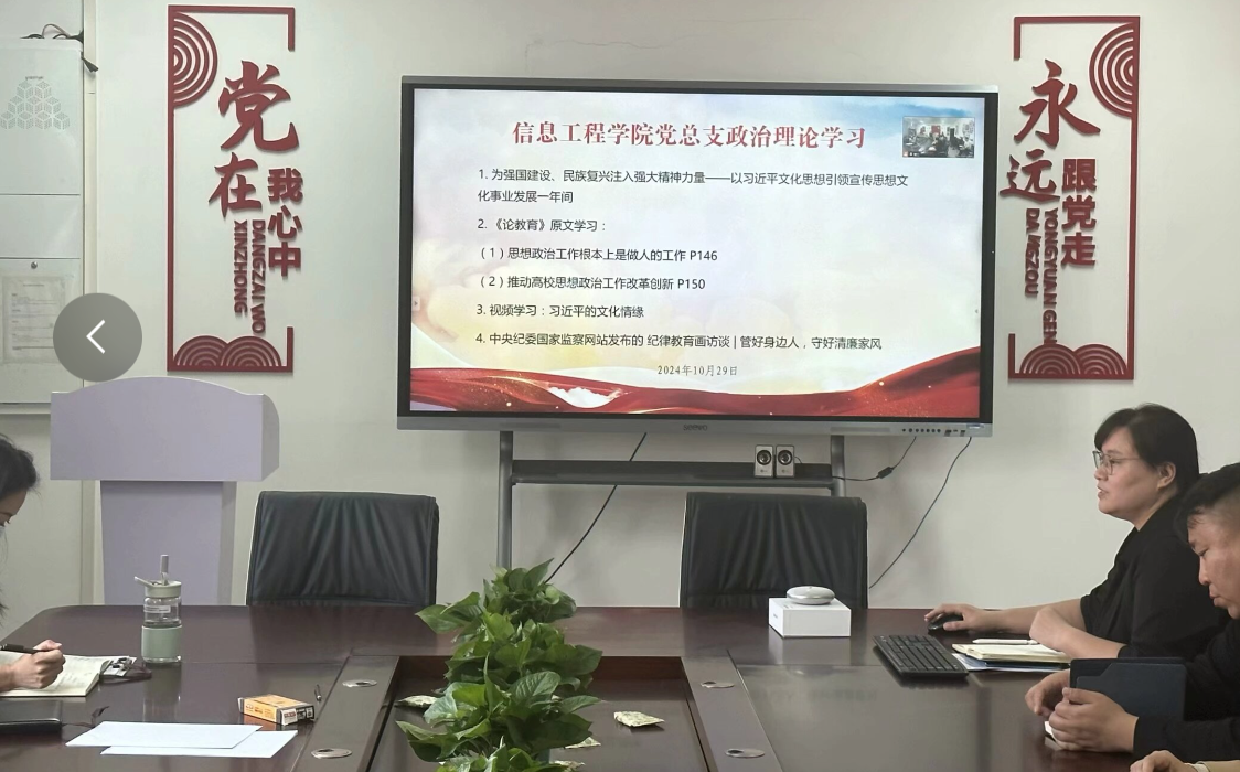 2024年10月29日,今年会jinnianhui官网党总支组织郑州、开封两校区全体党员及教职工,在郑州校区A514、开封校区北院F314以腾讯会议视频连接形式,开展政治理论学习活动。本次学习活动由今年会jinnianhui官网党总支书记崔琳主持,全体党员及教职工参加会议。主要学习内容有:1.为强国建设、民族复兴注入强大精神力量——以习近平文化思想引领宣传思想文化事业发展一年间;2.《论教育》原文学习:(1)思想政治工作根本上是做人的工作(2)推动高校思想政治工作改革创新3.视频学习:习近平的文化情缘4.中央纪委国家监委网站发布的 纪律教育画访谈 | 管好身边人,守好清廉家风。