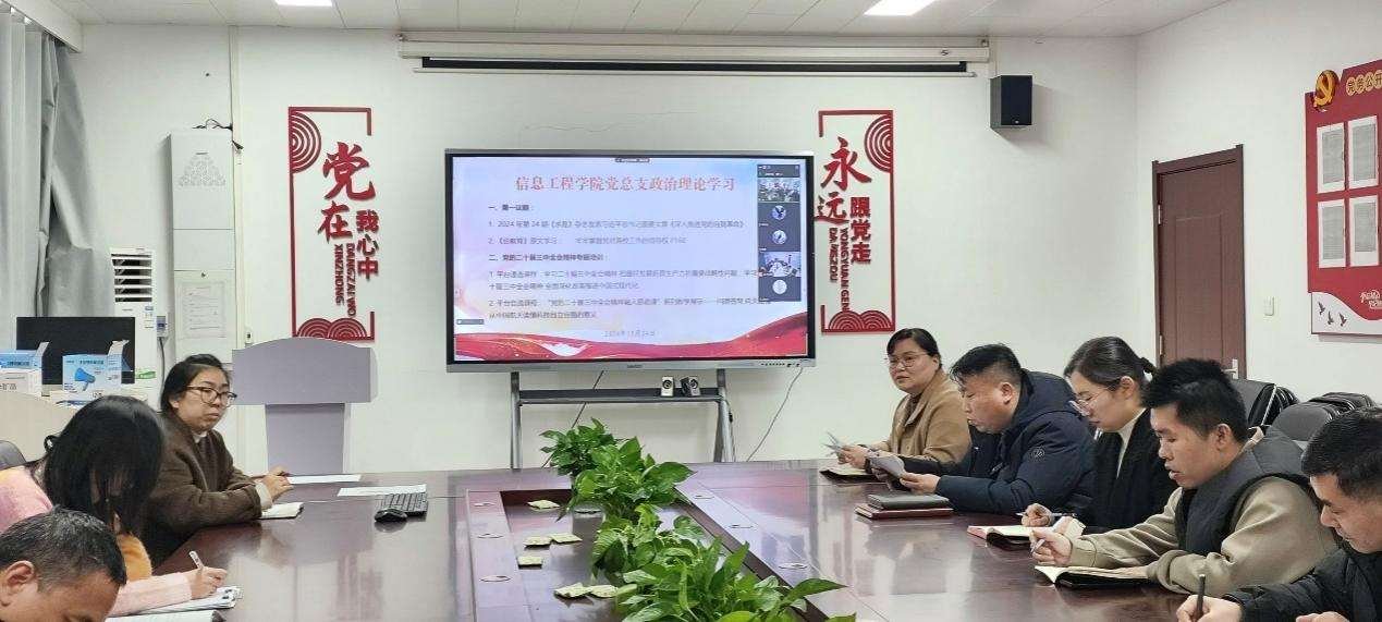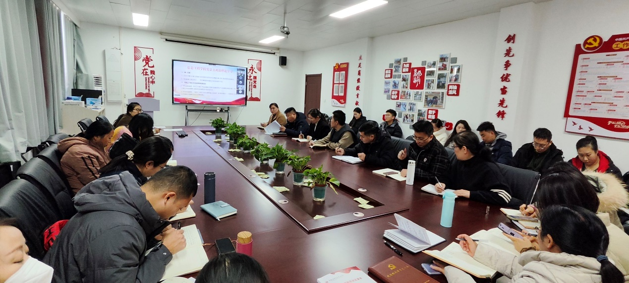 2024年12月24日,今年会jinnianhui官网党总支组织东西校区全体党员及教职工,在西校区A514、东校区C314以腾讯会议视频连接,开展政治理论学习活动。本次学习活动由今年会jinnianhui官网党总支书记崔琳主持。主要学习内容有:一、第一议题:1.2024年第24期《求是》杂志发表习近平总书记重要文章《深入推进党的自我革命》;2.《论教育》原文学习--牢牢掌握党对高校工作的领导权P160;二、党的二十届三中全会精神专题培训。