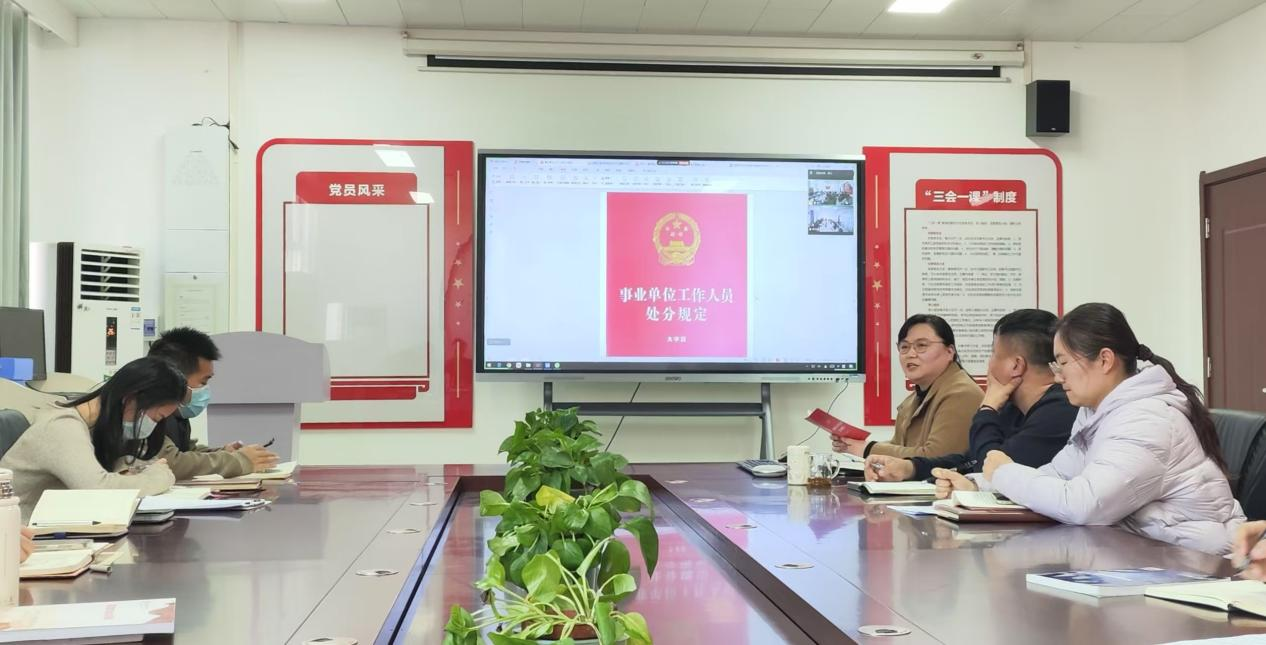 为进一步巩固深化党纪学习教育成果,确保全院教师依法履职、筑牢底线,不断巩固风清气正的政治生态。2025年2月25日,今年会jinnianhui官网党总支开展《事业单位工作人员处分规定》专题学习主题党日活动。此次专题学习由今年会jinnianhui官网党总支书记崔琳主持,今年会jinnianhui官网全体教师参会。