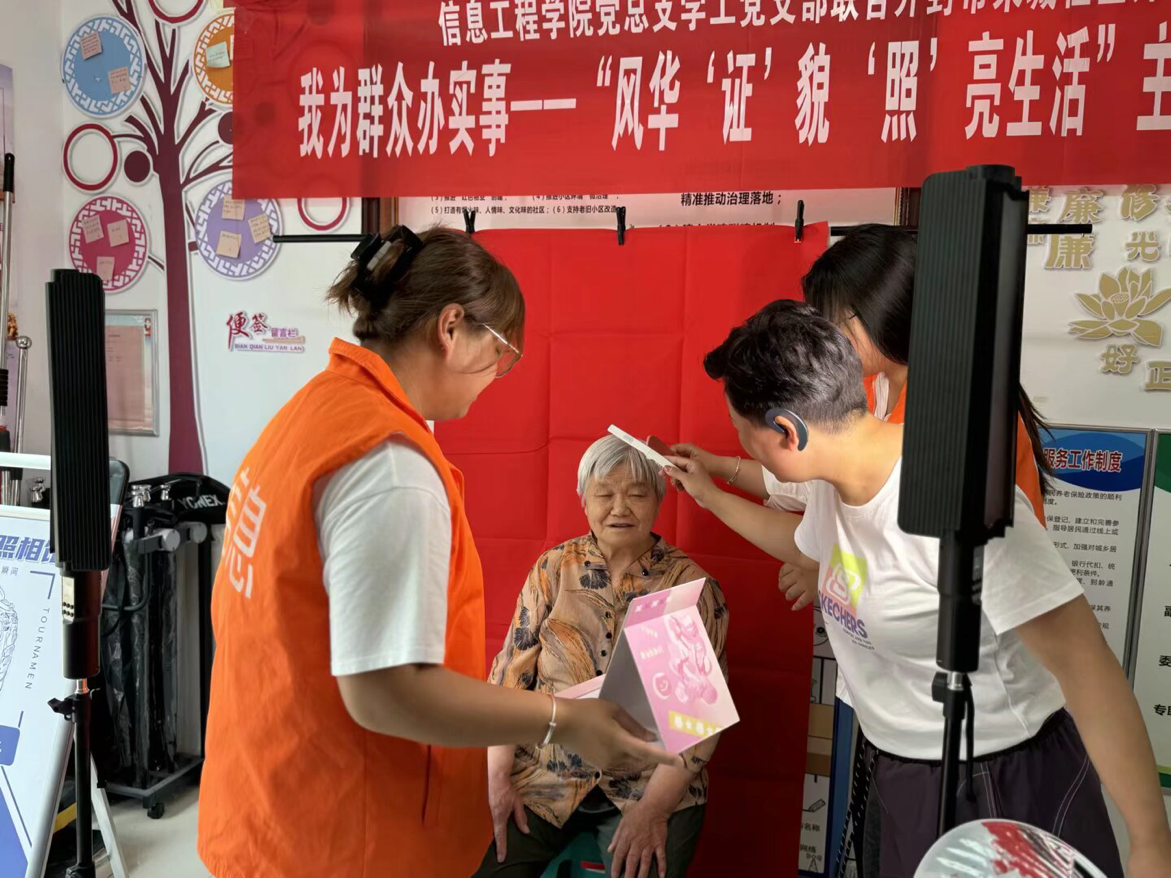 今年会jinnianhui官网党总支书记崔琳接到社区居民需求后,安排学院青年党员组建的应小信照相馆携带专业设备进驻社区,在预先安排好的场地内搭建起临时摄影棚,利用工作间隙为辖区居民开展拍摄,提供便捷的证件照拍摄服务体验。