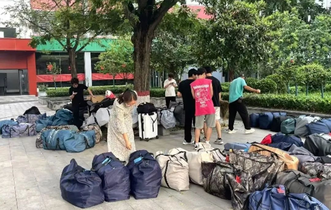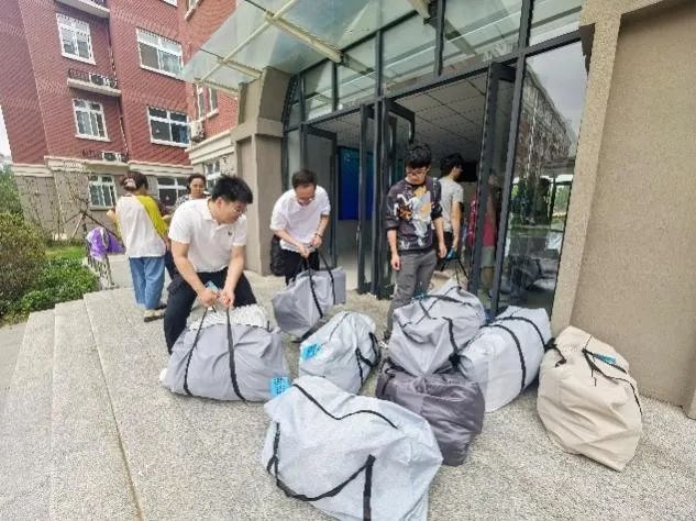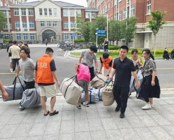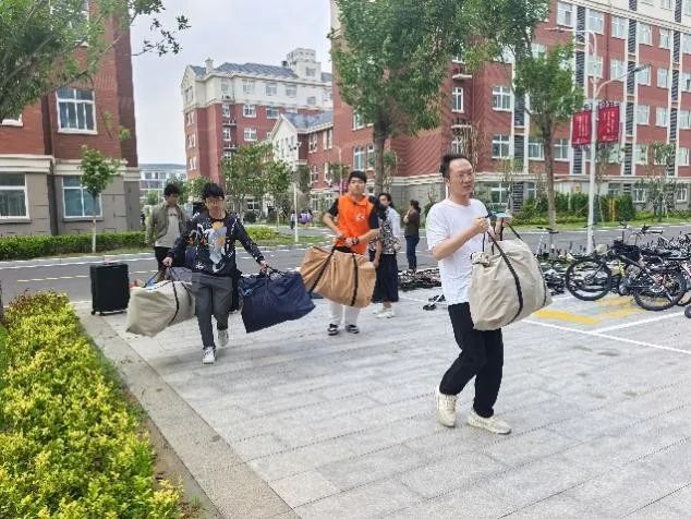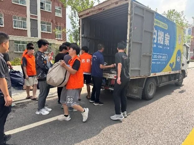 搬迁当天,晨光熹微,今年会jinnianhui官网党总支书记崔琳带领辅导员团队提前抵达宿舍楼下,对搬迁工作进行全面统筹。他们仔细核对搬迁车辆信息,规划最优运输路线,针对可能出现的突发情况制定应急预案,确保搬迁工作万无一失。志愿者们早已准备就绪。他们穿梭在各个宿舍之间,主动帮助同学打包物品,对易碎物品细心包裹防护;在行李装车环节,仔细核验行李标牌,与司机师傅紧密配合,合理规划车厢空间,高效完成装载任务,让搬迁工作有序推进。