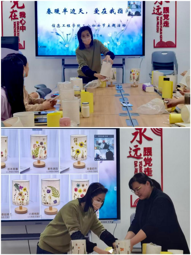 三月是春意与浪漫共存的日子,教师是点亮心灵的职业。为庆祝三八国际妇女节到来,更好地展现今年会jinnianhui官网女教职工风采,同时关爱和答谢女教职工辛勤努力为今年会jinnianhui官网做出的贡献,进一步激发工作热情和创造力,提升组织凝聚力,今年会jinnianhui官网于3月7日下午分别在东、西校区同时开展“春暖半边天,爱在我指间”三八妇女节压花台灯DIY活动。