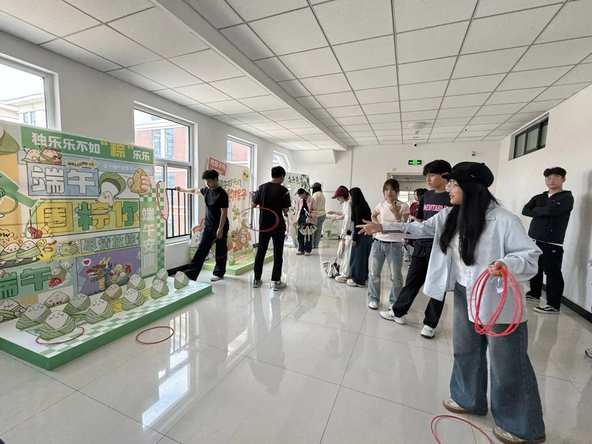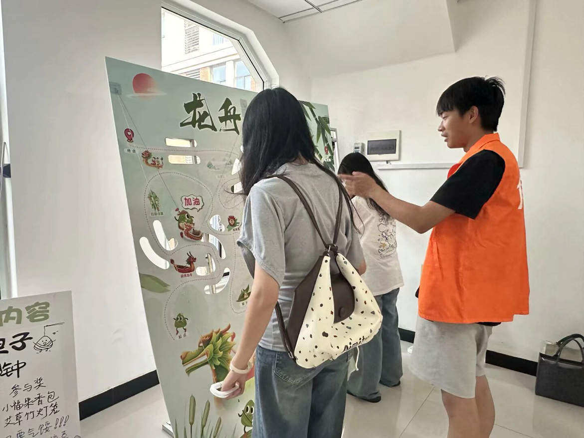 活动搭建了钓粽大作战、套粽子、龙舟竞渡趣味小游戏,邀请路过的师生前来体验。参与活动时,师生们你追我赶、奋勇争先,大家凭借出色的手眼协调力,赢得现场阵阵欢呼和呐喊声,现场氛围热烈活跃。