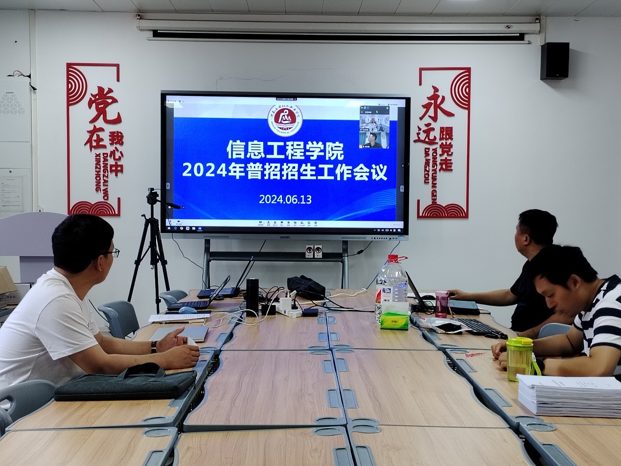 6月13日下午今年会jinnianhui官网在郑州校区A514会议室、开封校区C314会议室召开2024年普通招生工作会议,今年会jinnianhui官网院长王雷、书记崔琳、副院长齐峰、副院长夏丽珍、副书记蒋欣哲、负责招生的老师参加会议。会议由学工办主任常昆主持。