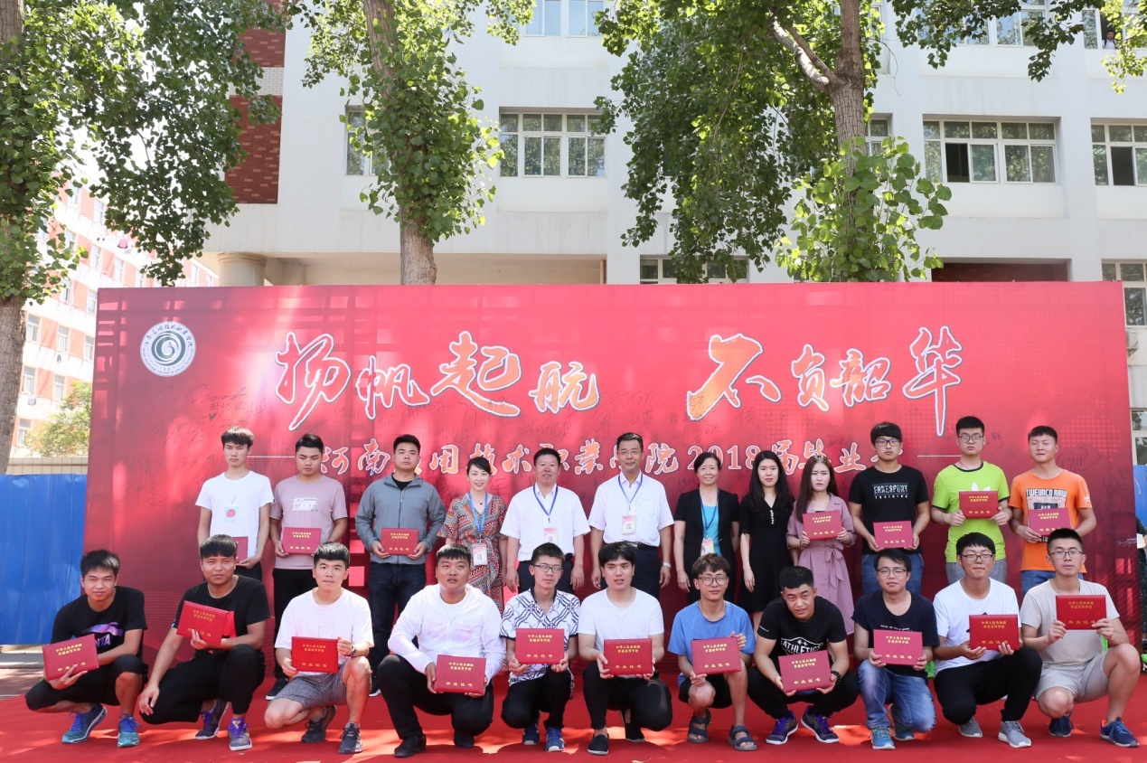 党委书记秦书君为省级优秀毕业生颁发荣誉证书;院长姚勇为毕业生代表颁发毕业证书。