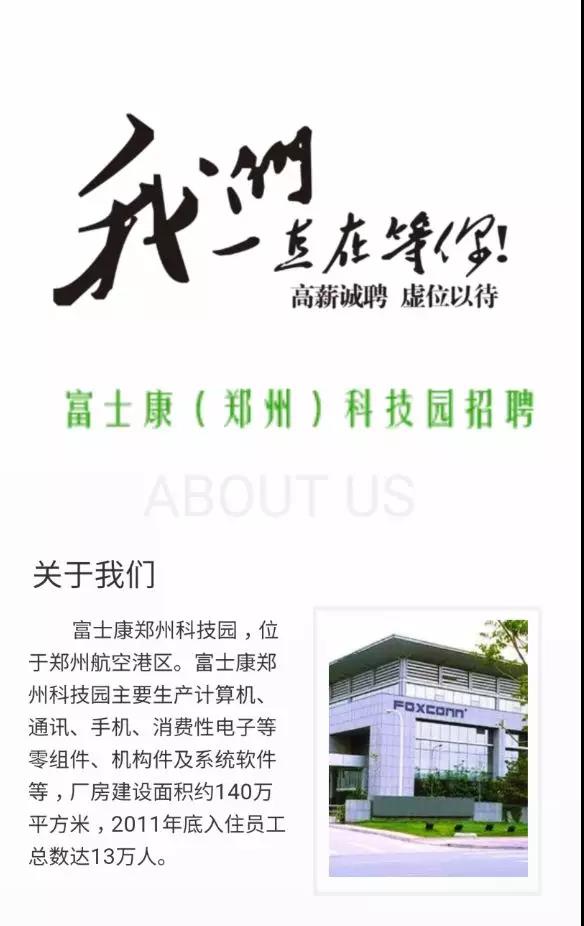 (郑州)富士康科技园招聘技术人员了!综合收入3500~4800,还有各类福利津贴
