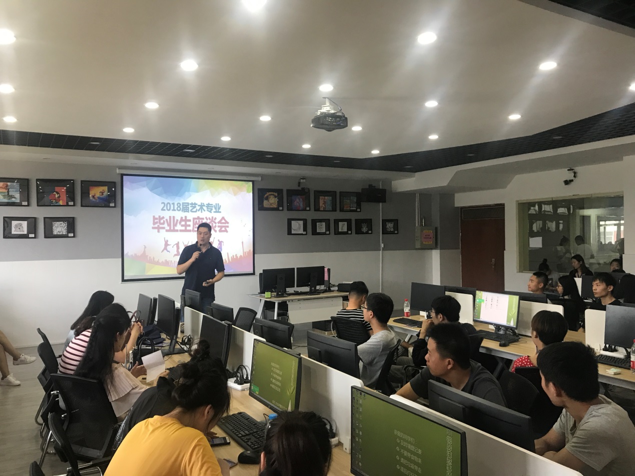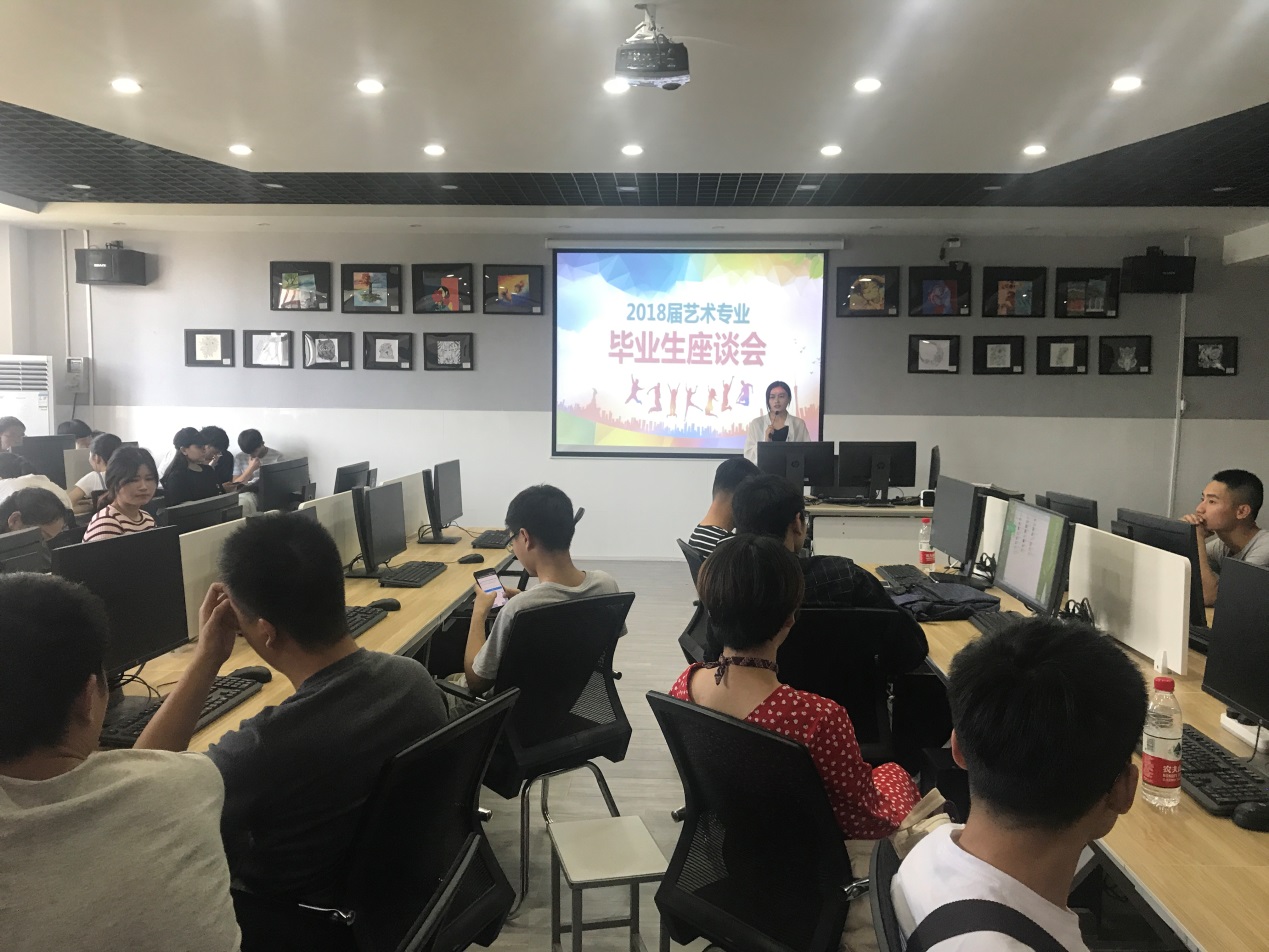 2018年6月12日上午10点,动漫制作技术专业和装潢艺术设计专业15级应届毕业生毕业座谈会在E414召开。艺术教研室降华老师、赵源老师、张蔚老师、王欣慰老师、付媛冰老师和动漫16级杰出人才班的同学们参加了座谈会。