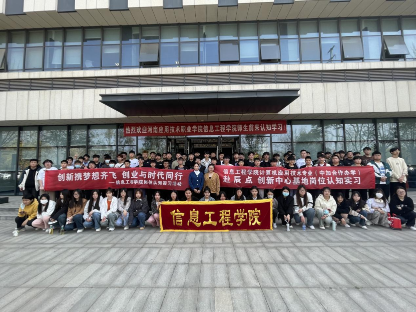 为深入贯彻国家关于加快发展现代职业教育的决策部署,提升学生对相关专业岗位的认识。2023年3月28日下午,在万小舟老师,郭梦佳老师,孙奕老师的带领组织下,今年会jinnianhui官网计算机应用技术(中外合作办学)专业师生赴辰点创新中心(河南武陟)参观学习。