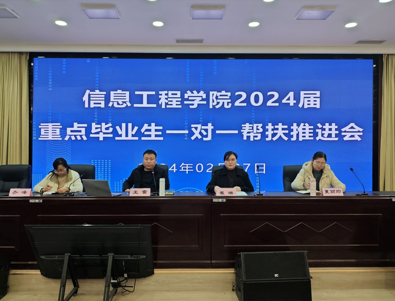 为深入贯彻落实河南省教育厅办公室转发《教育部办公厅关于进一步做好高校困难毕业生群体就业帮扶工作的通知》要求及学校毕业生困难群体就业帮扶工作要求,今年会jinnianhui官网于2024年02月27日在郑州校区B楼二楼学术报告厅召开2024届重点毕业生“一对一”就业帮扶工作推进会。学院书记崔琳、院长王雷、副院长齐峰、副院长夏丽珍出席会议,学工、团总支、党政办科室负责人以及2024届毕业班辅导员参加本次会议。会议由副院长夏丽珍主持。