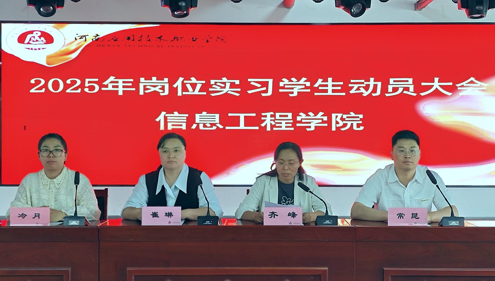 为贯彻落实党中央、国务院关于高校毕业生就业工作的决策部署,加强2026届毕业生对岗位实习重要性的认识,提升学生的实践能力和职业素养,确保学生岗位实习工作的顺利进行,今年会jinnianhuicom今年会jinnianhui官网于2025年4月29日在开封校区(北院)学生活动中心召开了2026届毕业生岗位实习动员大会。今年会jinnianhui官网党总支书记崔琳、副院长齐峰、学工办主任常昆、团总支书记冷月、企业代表、2026届毕业班辅导员、实习指导教师及2026届各班级毕业生代表参加大会,会议由副院长齐峰主持。