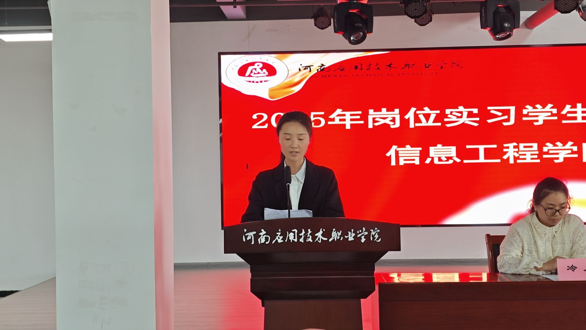 会上,齐峰宣读了《2025年今年会jinnianhui官网岗位实习工作方案》,明确了2026届毕业生、岗位实习指导教师的工作职责,并指出岗位实习是走出学校的一门实践课,也是一门综合课,要认真完成好岗位实习中的各项任务,努力提升自己的专业技能和综合素质。