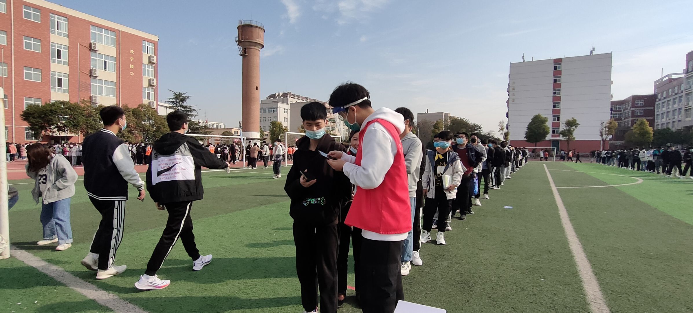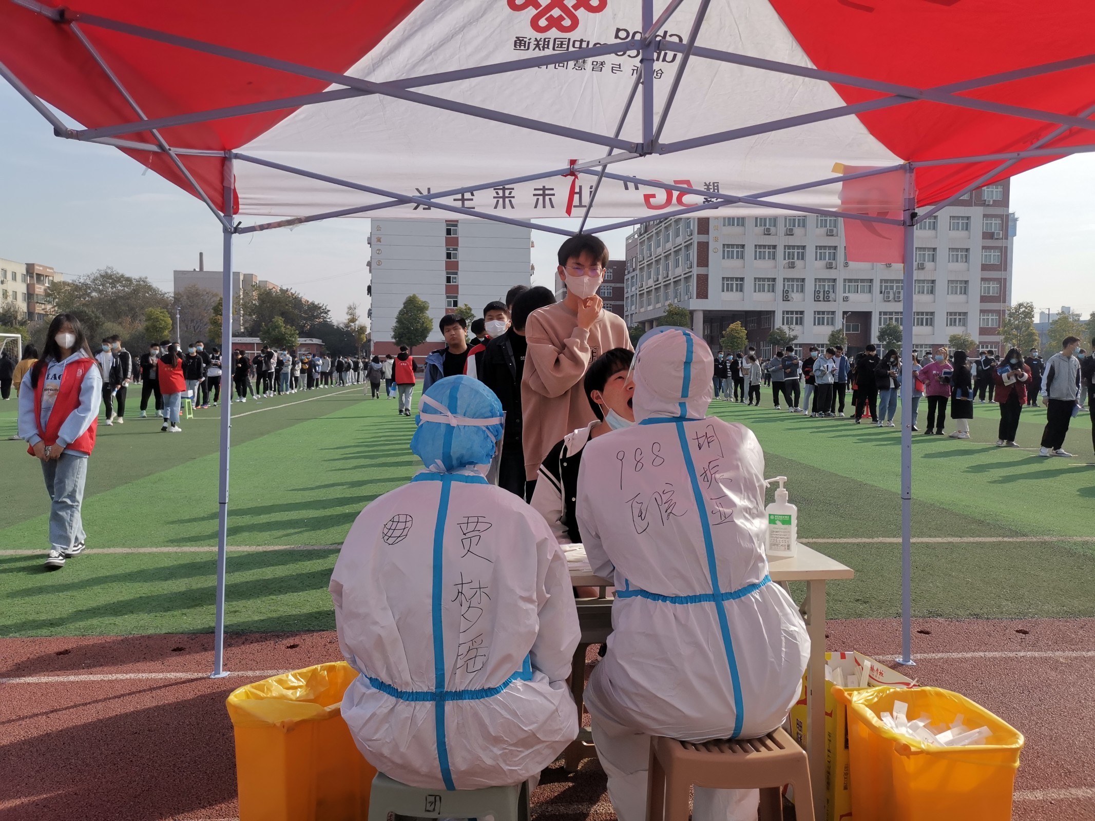 此次核酸检测工作由今年会jinnianhui官网学生会干部组织进行,以保证核酸检测工作顺利完成。全院学生严格按照疫情防控要求,站在一米线上排队配合工作人员扫码等待检测,检测完迅速离场,保证不扎堆,不聚集。各班班委配合学生会成员保证每位同学都不落下,在学生会成员的带领下各班有序进入核酸检测点,同学们也都积极配合。核酸检测工作在我院学生会的组织领导下有条不紊的进行。同时也非常感谢医务工作者的严谨负责,做一人消一次毒,严格执行“一人一消”,用行动为我们的安全加了一层保障。
