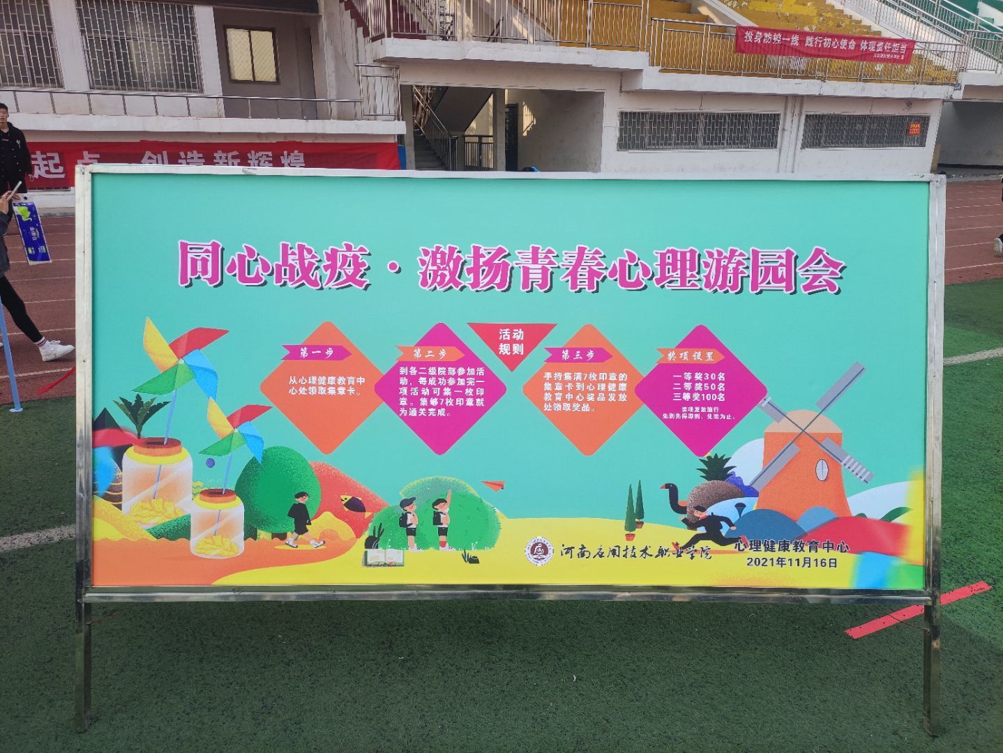 为给同学们营造一种共同关注心理健康、重视心理健康的氛围,促进大学生身心健康发展,加深同学们对沟通与合作的理解与认识,改善大学同学之间交流沟通贫乏的状况。 2021年11月16日下午12时50分今年会jinnianhui官网在操场组织参加心理游园会。