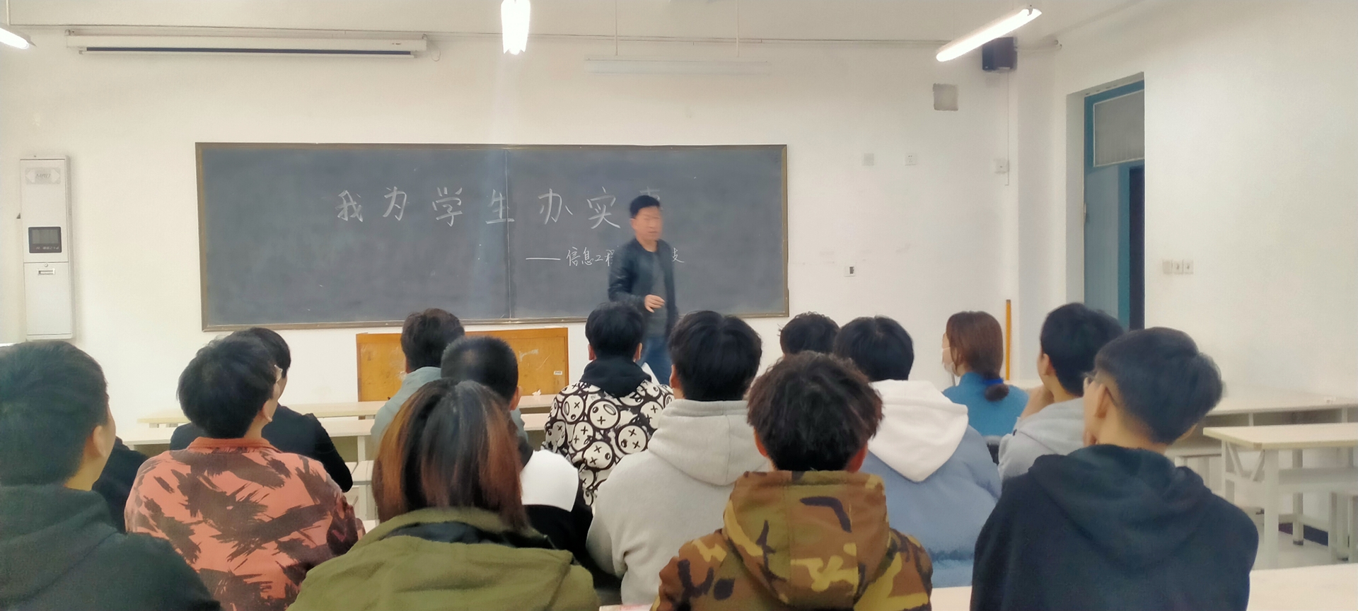 为了践行校党委在党史学习中提出的“我为学生办实事”的指示精神,了解我院学生在学习、生活、工作等方面存在的问题,体现服务学生、帮助学生、引领学生的活动目的,2021年10月21日中午12时,今年会jinnianhui官网在教学楼103教室召开“我为学生办实事”座谈会。会议由今年会jinnianhui官网党总支书记楚斌和团总支书记赵源主持召开,座谈对象面向全体今年会jinnianhui官网20级部分学生会干事。