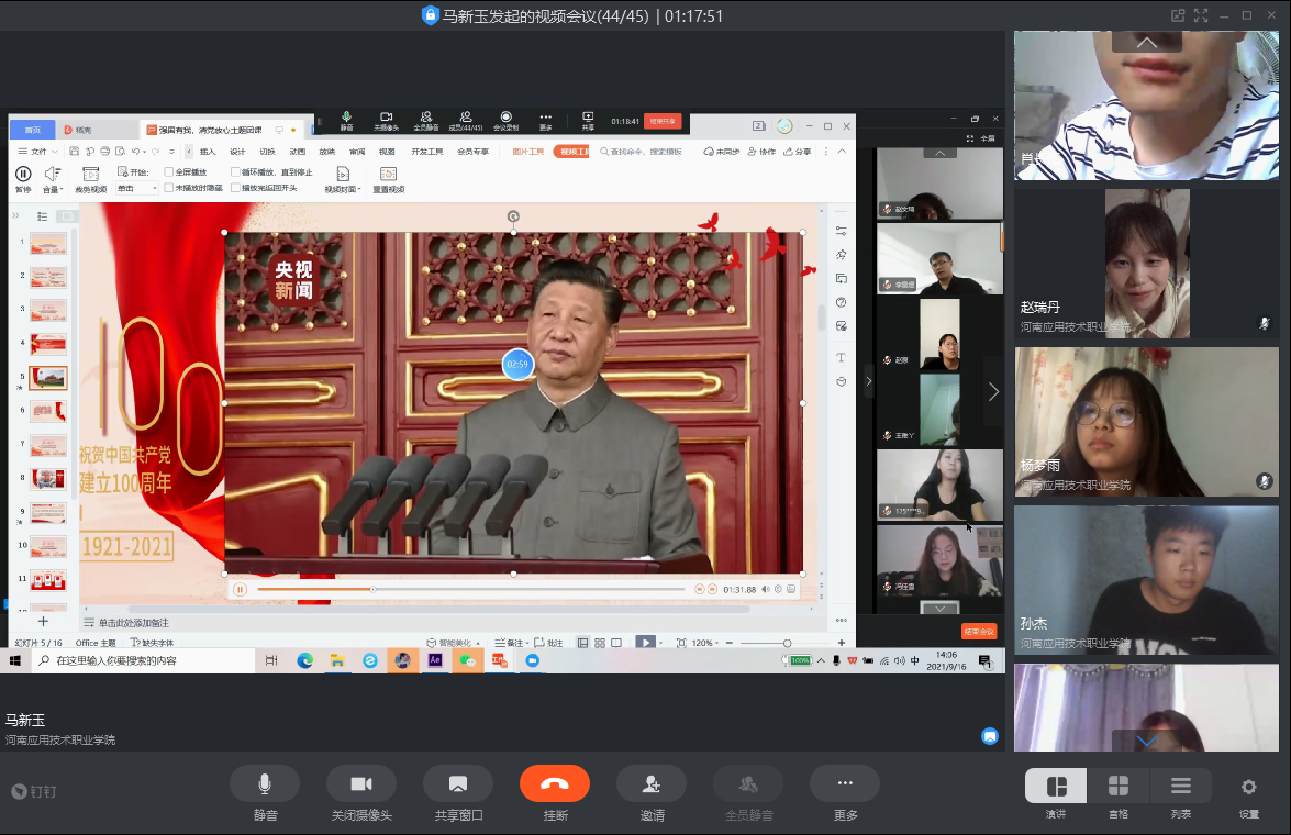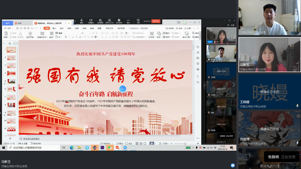 为认真学习贯彻习近平总书记“七一”重要讲话精神,引领青年团员们坚定政治信念,不断提高学生团员的思想认识,发挥青年讲师的教育引导作用,以先进典型事迹促进示范引领,今年会jinnianhui官网团总支带领各支部积极开展“请党放心,强国有我”主题团日活动。此次团日活动以线上视频会议的形式展开,由各班团支书带领同学集中学习。
