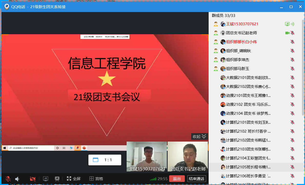 为了加强各班团支部负责人对其工作的认识,熟悉团组织各项工作的内容,为今后团组织各项活动的开展提前做好准备,今年会jinnianhui官网团委组织部于2021年9月17日以线上会议的形式顺利召开了2021-2022学年第一次团支部负责人大会。今年会jinnianhui官网团总支书记赵源,学生会组织部工作人员以及全体21级团支部负责人参与此次会议。