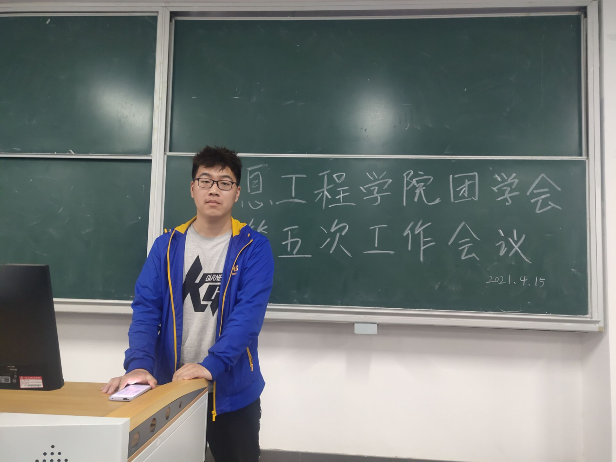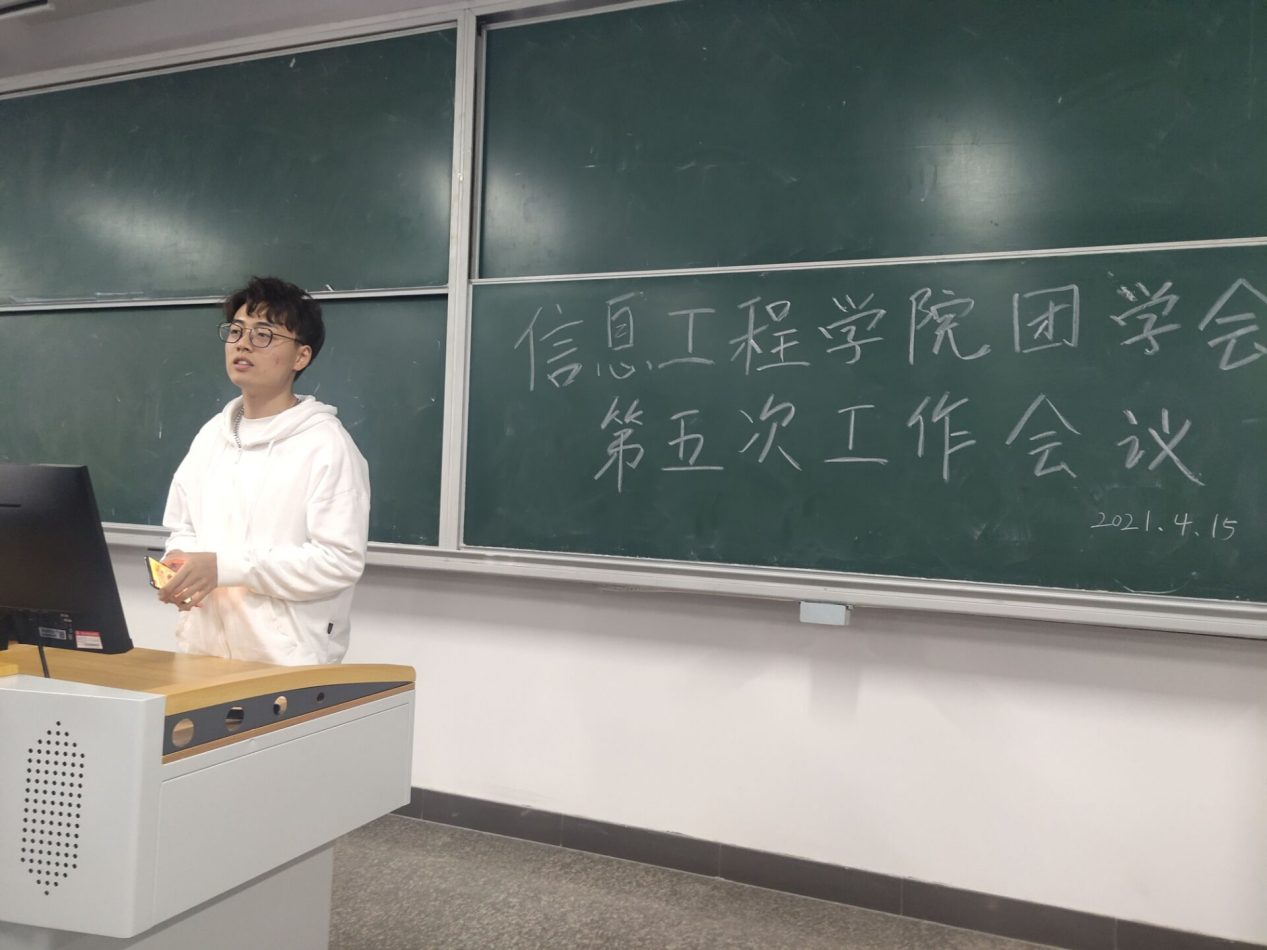 会议开始后,首先由团学会主席肖达对上周的工作进行总结:第一,团学会各部门要继续保持当前工作状态,要更加积极、更加主动的参与各项活动;第二,参加体育文化节活动,比赛结束后要收拾好场地,要展示出信息学院的风采和素质。