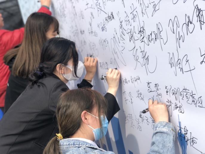 活动共分为四个环节,分别为介绍活动目的及意义,宣读《反电诈倡议书》,各行业代表发言和签名墙上进行签名。其中,我校团委书记张凡同志作为代表上台发言,并代表广大防电诈志愿者作出表态。