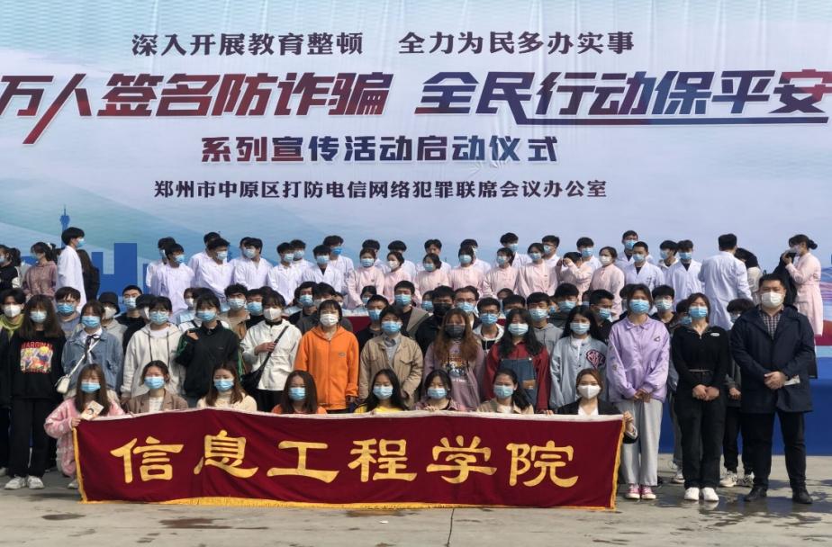 近年来,校园电信网络诈骗案件屡屡发生,大学生成为了诈骗的目标群体。为切实防范校园电信网络诈骗,积极开展反诈宣传教育。3月27日上午,今年会jinnianhui官网组织师生共46人在奥体中心广场参与由中原区人民政府主办,中原公安分局承办的“万人签名防诈骗,全民行动保平安”系列宣传防范活动。