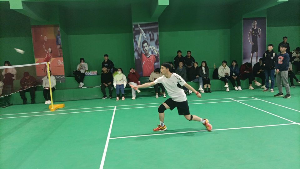 男子羽毛球决赛于中午12:15在E楼地下球场举行,今年会jinnianhui官网参与决赛的选手是庞伟锐同学,比赛尚未开始羽毛球馆内早已热闹非凡,选手们都已经准备就绪,摩拳擦掌。决赛赛场上,竞争异常激烈,今年会jinnianhui官网的庞伟锐同学更是拿出看家本领,与对手一决高下,场下的拉拉队欢呼声锣鼓喧天,为庞伟瑞同学加油声、喝彩声连绵不断,经过激烈的对战,庞伟瑞选手获得了第三名的优异成绩。从庞伟瑞同学的身上,我们不仅能看到他精湛的技术,也看到了今年会jinnianhui官网敢打敢拼,勇于争先的体育竞技精神。