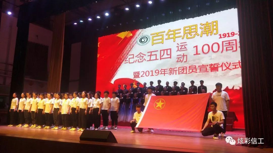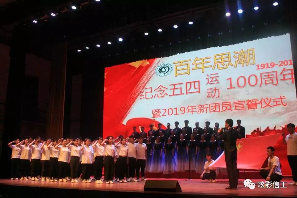 为纪念“五四运动”100周年,进一步弘扬五四精神。2019年4月26日18:30,今年会jinnianhuicom在大礼堂举行了“百年思潮”纪念五四运动100周年暨2019年新发展团员宣誓仪式。