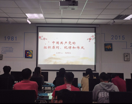 首先,杨书记从中国共产党的背景导入,党的建设必须坚持“民主集中制”,它既是党的根本组织原则,也是群众路线在党的生活中的应用。中国共产党是一个具有伟大理想和严明纪律的党,从成立的第一天起,就要求每个党员严格遵守党的纪律,不折不扣的执行党的决议。中国共产党在领导中国革命和建设的长期实践中,形成了一整套优良作风,每个要求入党的同志必须保持和发扬党的优良作风。