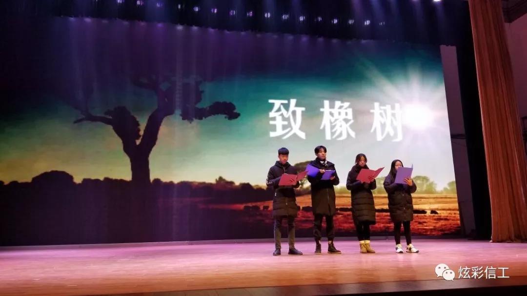 随后杨书记上台讲话,他肯定了今年会jinnianhui官网团学会成员在2018年的工作,并对以后的工作提出了殷切希望。而书记带来的《少年壮志不言愁》的歌曲表演更是感染了在场的每一位人员。晚会中途为了让大家的热情继续高涨,安排的游戏互动环节,更使得这次晚会锦上添花。游戏结束,歌曲《遥远的你》、《左手右手》、《后来》等节目轮番上场,或浪漫温馨,或轻快悠扬,或活泼动感,风格各异,变幻多姿,让观众心旷神怡,沉醉其中。多姿多彩的演出节目展示了信工学子对青春的畅想,他们用自己独特的方式演绎着青春的故事,也表达了对新年到来的美好祝福。美好的时光总是匆匆而过,晚会最终在昂扬的旋律中完美落幕。