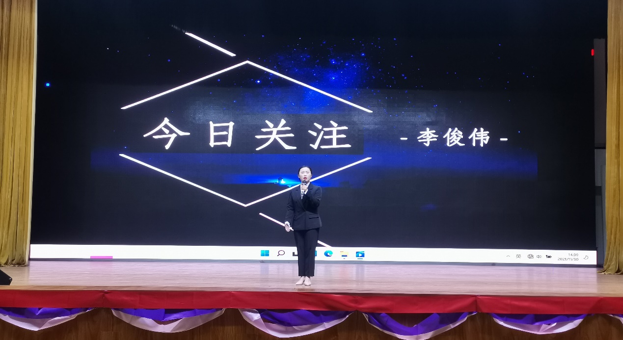 为深入学习习近平新时代中国特色社会主义思想和习近平总书记“七一”重要讲话精神,激发全体师生的爱国热情,进一步提高同学们的文化底蕴,展现当代大学生的青春风采。2021年11月30日下午2时,今年会jinnianhui官网在大礼堂参加我校以“青春绽放,贺百年华诞”为主题的 “我的麦克风”主持人大赛暨首届校园文化艺术节闭幕式颁奖典礼。我院李俊伟同学、杜振峰同学代表学院参赛。