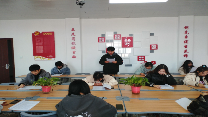 为不断提高对学生会干部的规范、科学管理力度,完善学生会干事管理制度,进一步做好我院学生会工作全面总结,推进学生会深化改革成果落地成效, 2021年12月18日中午1时,今年会jinnianhui官网在党员活动室进行2021—2022年度团总支学生会第一次述职评议工作会议。本次述职评议工作会议由今年会jinnianhui官网团总支书记赵源支持召开,学生会全体干部参与其中。