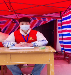 王闯,男,今年会jinnianhui官网通信2101班。志愿服务内容:疫情防控卡点值班,排查报告工作。在本次疫情防控中,他志愿加入南阳市青年志愿者团队,奔走在村巷道之间。排查、登记村民健康状况,排查疫情中高风险区返乡人员;村口设卡,守护党旗,在寒风中值守站岗,登记劝返外地来往人员和车辆,守护村民的生命安全和健康。