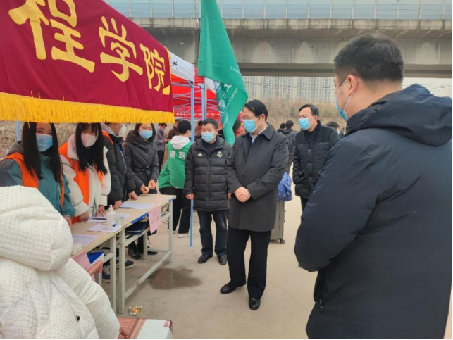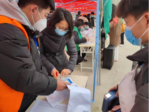 2月19日清晨,今年会jinnianhui官网志愿者们迅速在岗位集结完毕,等待我院返校学生的到来。校院领导也对本次报到工作十分关心,亲临现场指导工作,与大家亲切交流并叮嘱大家做好工作的同时要注意个人保暖、防护。