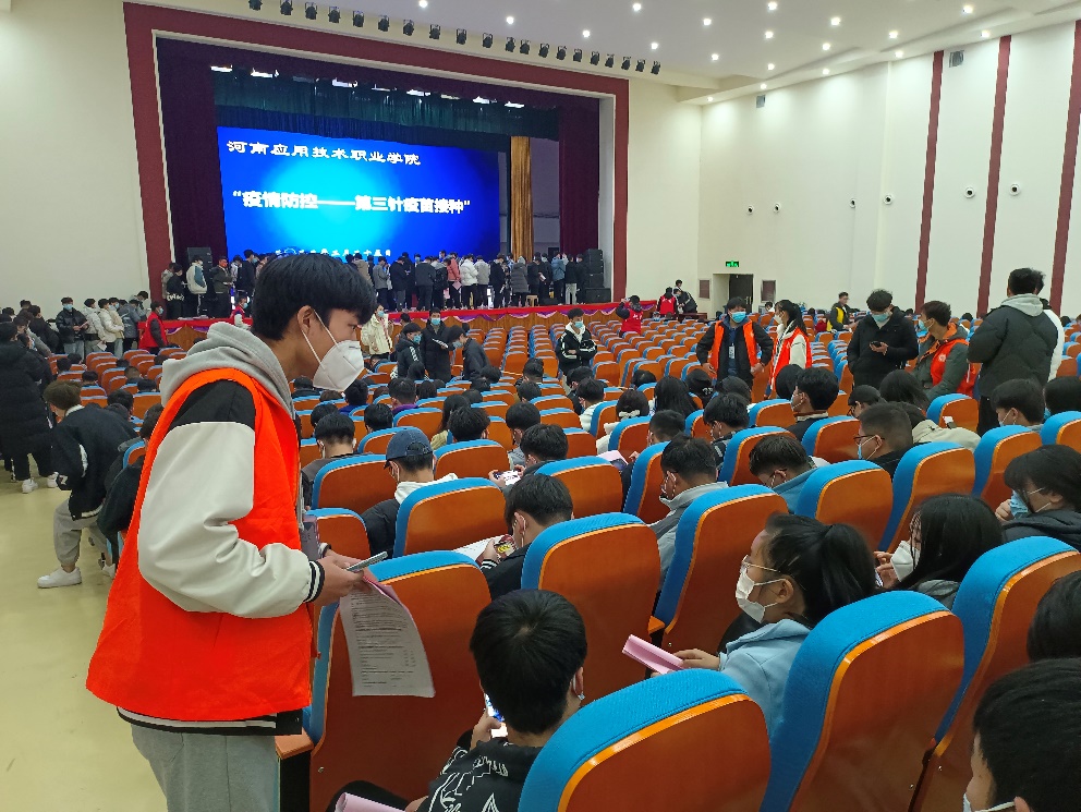 我院符合接种第三针接种条件的同学在得到消息后,提前备好身份证和其他相关证件,严格按照防疫要求提前在北广场集合,积极配合我院负责人的工作。接种“加强针”的同学在今年会jinnianhui官网成员的引导下依次、分批次前往接种处进行“加强针”接种。