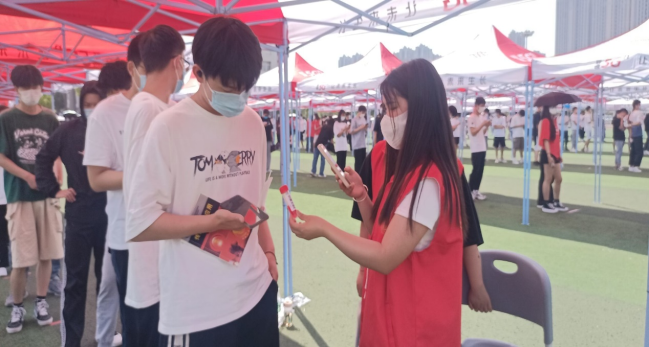检测前,我院志愿者按照工作安排提前到达核酸检测工作现场,提醒同学们全程佩戴口罩,组织各班学生有序排队,清点各班人数是否到齐,并检查各班同学的预约登记情况,随后,由我院志愿者分批次带领各班同学到达指定地点进行采集;检测过程中同学们自觉隔开1米间隔,在全院同学,志愿者与医护人员的协调配合下,每一次的核酸检测工作均在有序进行中。