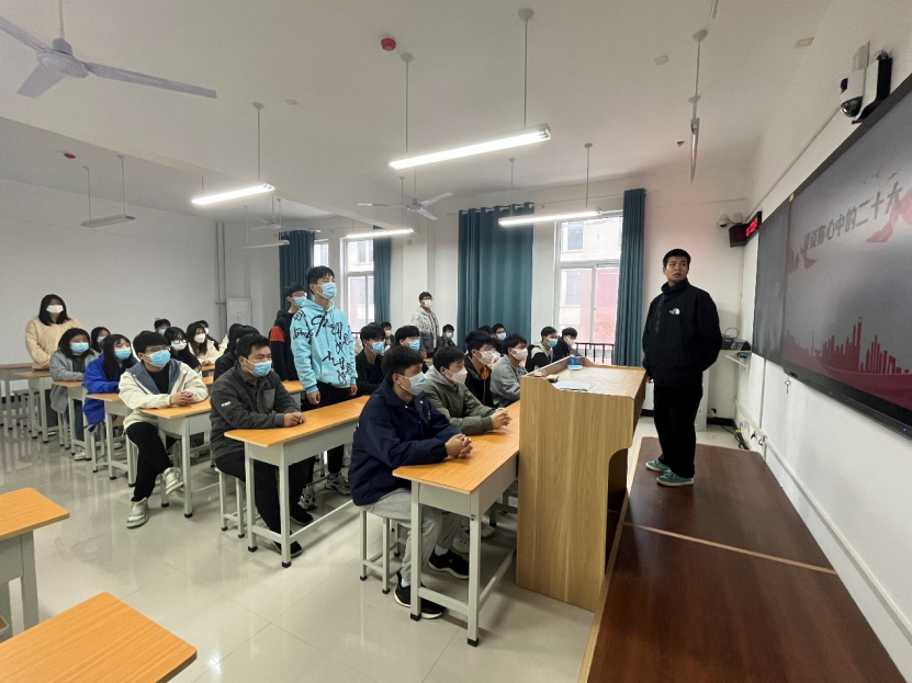 活动中,楚宸宇以“党的百年光辉历史”为引,结合党的二十大会议报告,向同学们讲述了会议精神,概述了大会报告内容,接着同学们就“我心中的二十大” 展开了讨论,大家纷纷结合自己的生活和学习,表达了自己的感受和想法。
