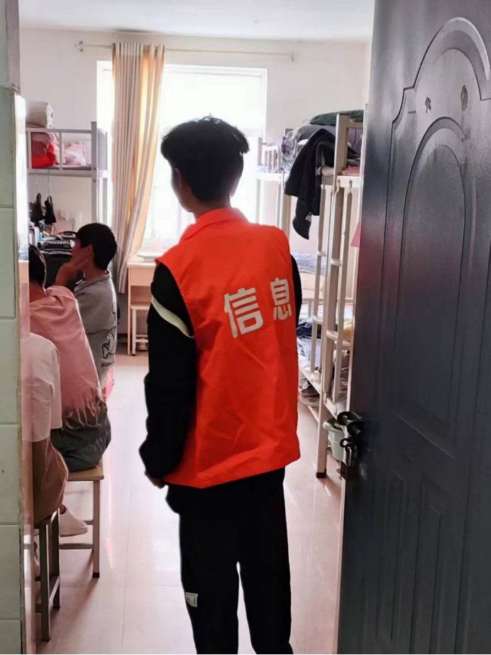 我们向各个宿舍楼老师签到后,开始对每层楼进行安全排查以及卫生记录。经检查发现,大部分宿舍的总体情况较好,地面无杂物堆积,房间整洁,物品摆放有序,但是仍然有个别寝室存在垃圾未倒的现象。对此,我们对其进行了提醒以及拍照上报等措施,督促同学们积极改正。