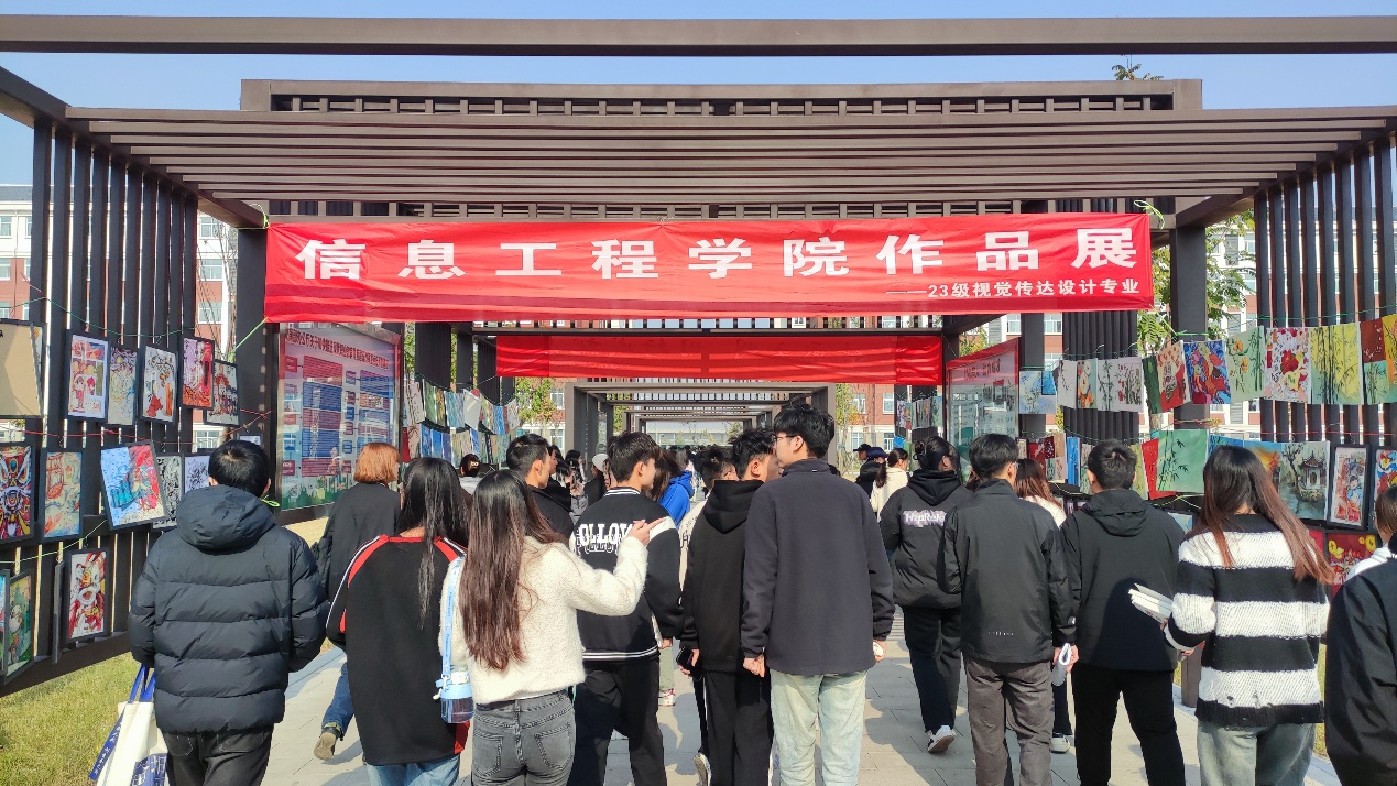 为继续深入贯彻落实党的二十大关于“推进文化自信自强,铸就社会主义文化新辉煌”的重要部署,提升大学生对中国传统文化的认同感和自豪感,提高学生学以致用的能力,结合视觉传达设计专业特点,2023年11月21日—11月22日,数媒教研室师生,在开封校区文化长廊,举办了2023级视觉传达设计专业作品展。