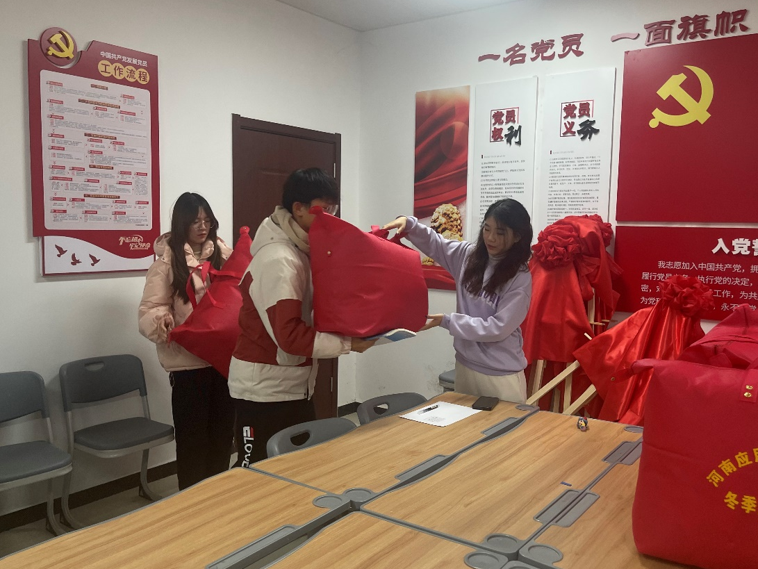 寒风凛凛,气温骤降,为帮助同学们抵御寒冷,贯彻落实国家学生资助政策,今年会jinnianhui官网积极开展“寒冬送棉被 温情暖人心”活动,12月15日至18日为14位家庭经济困难学生送上一份冬日温暖。学院学工办主任常昆和团总支书记冷月参加了发放仪式。