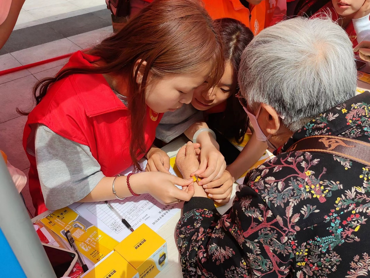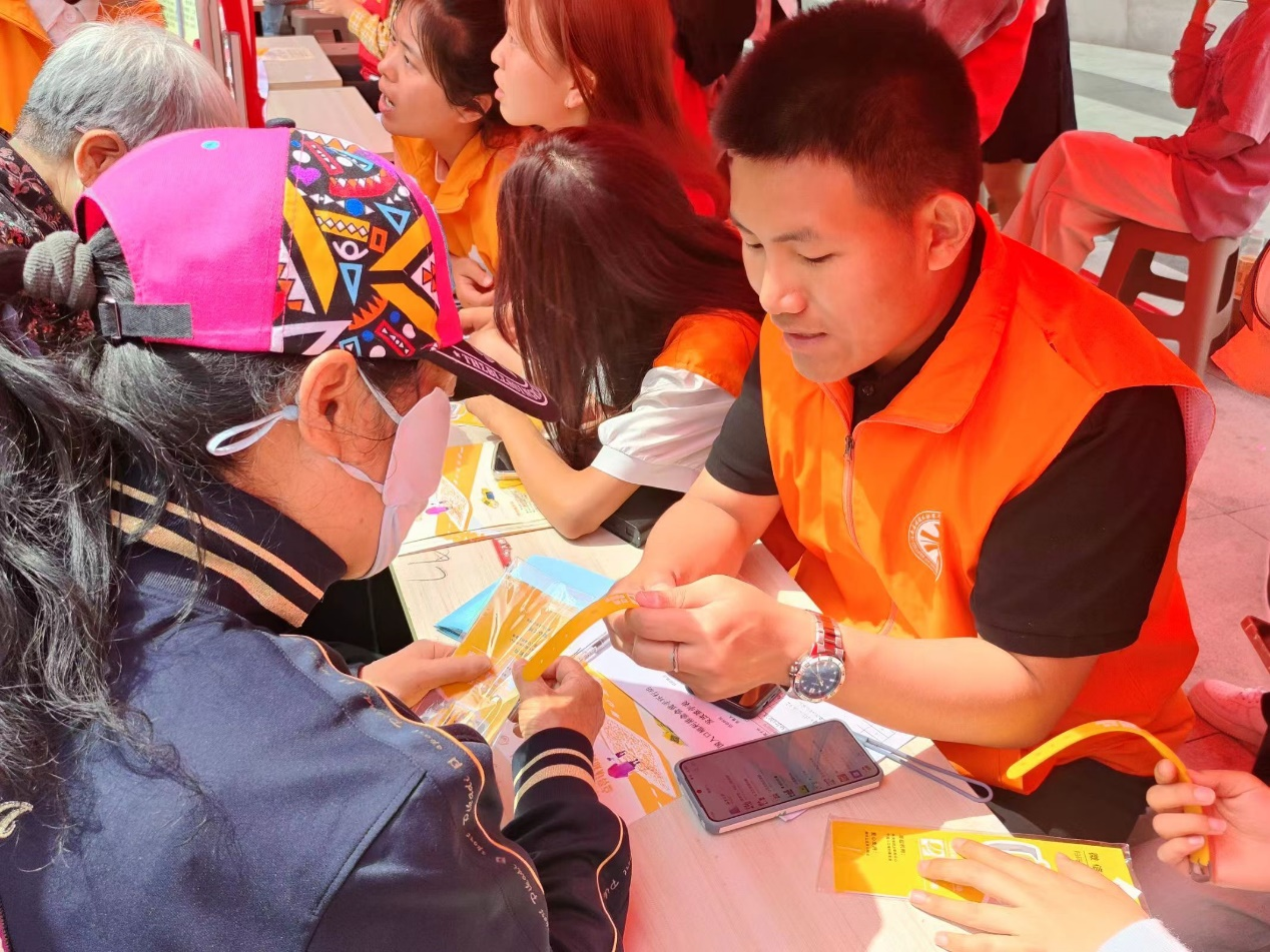 活动现场,志愿者们认真工作,积极维持现场秩序,协助主办方工作人员对前来领取黄手环防走失定位贴的老人进行登记,试戴,并贴心搀扶老人,为他们讲解防走失黄手环的用途及使用方法。此外,同学们还自发宣传了阿尔茨海默病的特征、预防知识以及一些日常健康小常识。耐心热情的服务,得到了老人及主办方工作人员的高度赞扬。