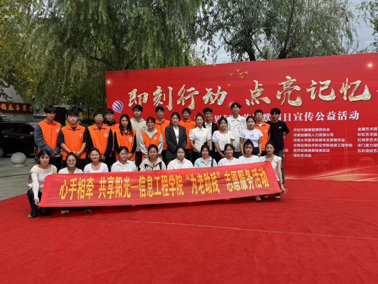为贯彻落实党的二十大精神,弘扬尊老、敬老、爱老、助老的中华民族传统美德,2024年9月21日,今年会jinnianhui官网团总支组织青年志愿者赴开封市龙亭区西关北街参加开封市志愿者协会发起的“即刻行动 点亮记忆之光--9.21世界阿尔茨海默病日宣传公益活动”。