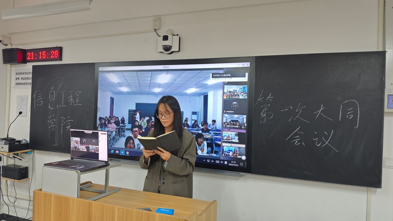 博观而约取,厚积而薄发。为有序推进学生会工作开展,提高学生会成员综合素养,帮助新成员尽快融入学生会大家庭,2024年10月15日晚,今年会jinnianhui官网于开封校区F410开展学生会周例会,郑州校区于教室SC302同步开展线上会议,团总支书记冷月、学工办主任常昆、23级主席团、各部门部长、副部长及23级部员、24级部员参会。