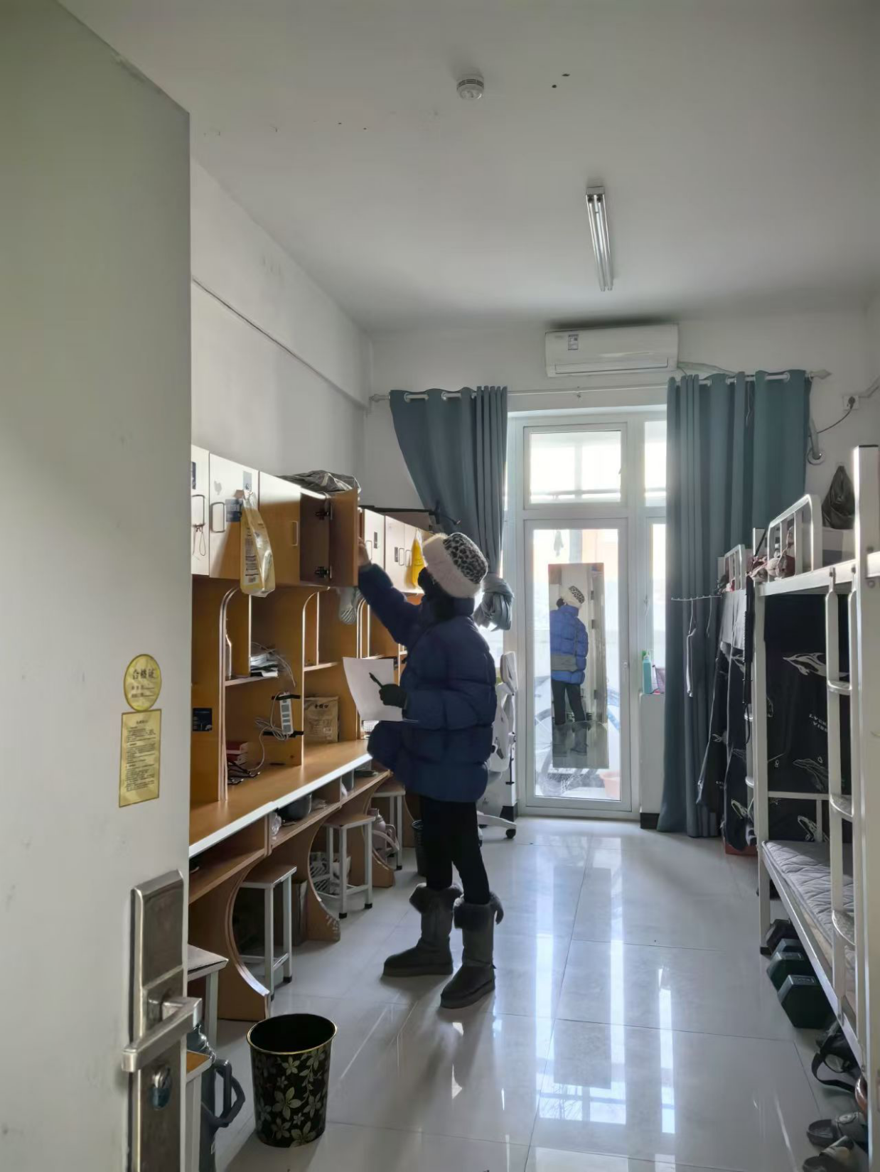 随后,辅导员对全院学生宿舍进行“三关一收”大检查。本次寒假安全检查专项工作,旨在排查学生宿舍安全隐患,营造舒适安全的学习生活环境,为期末及寒假离校期间校园宿舍安全保驾护航。我院将继续秉持“预防为主,安全第一”的理念,持续加强宿舍安全建设,筑牢消防防线,共建平安校园。