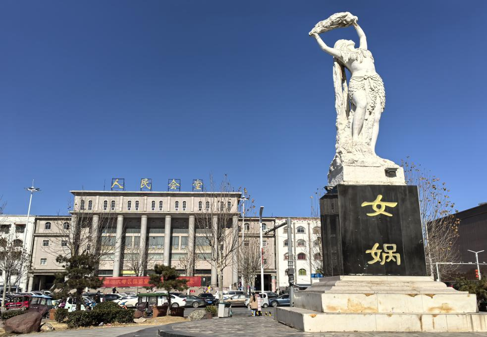 西华县北,中皇山下,女娲城巍然矗立,占地130余亩,仿古建筑错落有致。女娲像居中,高大庄严,双手擎五色巨石,驾祥云补天,神力尽显,守护苍生。