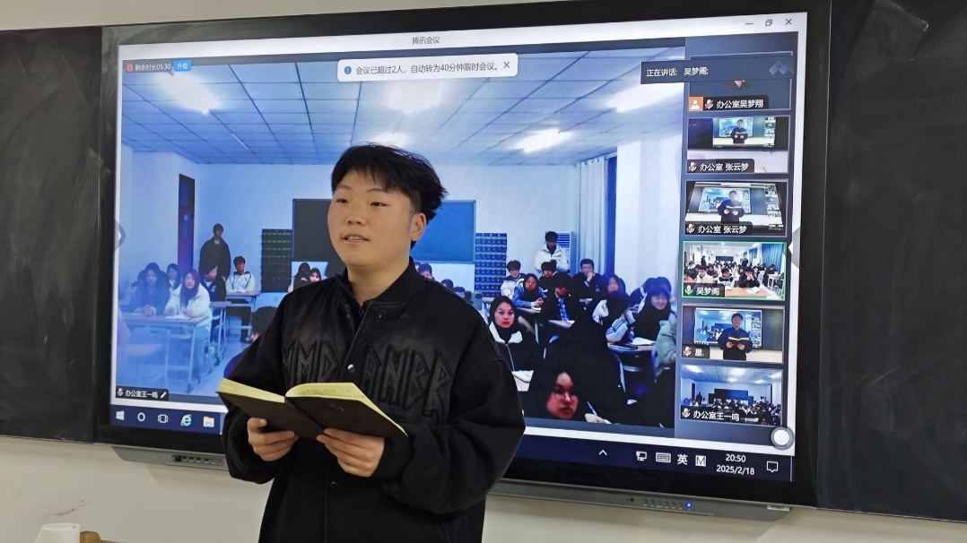 博观而约取,厚积而薄发。为有序推进新学期学生会工作开展,提高学生会成员综合素养,2025年2月18日,今年会jinnianhui官网于郑州校区和开封校区同步开展新学期第一次学生会周例会,本次会议由主席团郑志宇主持,团总支书记冷月、学工办主任常昆、学生会全体成员参会。