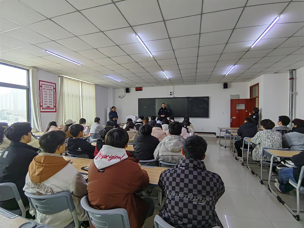 校保卫处副处长韩正好作总结讲话。他强调学生群体因社会经验不足易成为诈骗目标,呼吁大家保护好个人信息、提高警惕,携手共创一个安全无忧、和谐美好的校园环境。