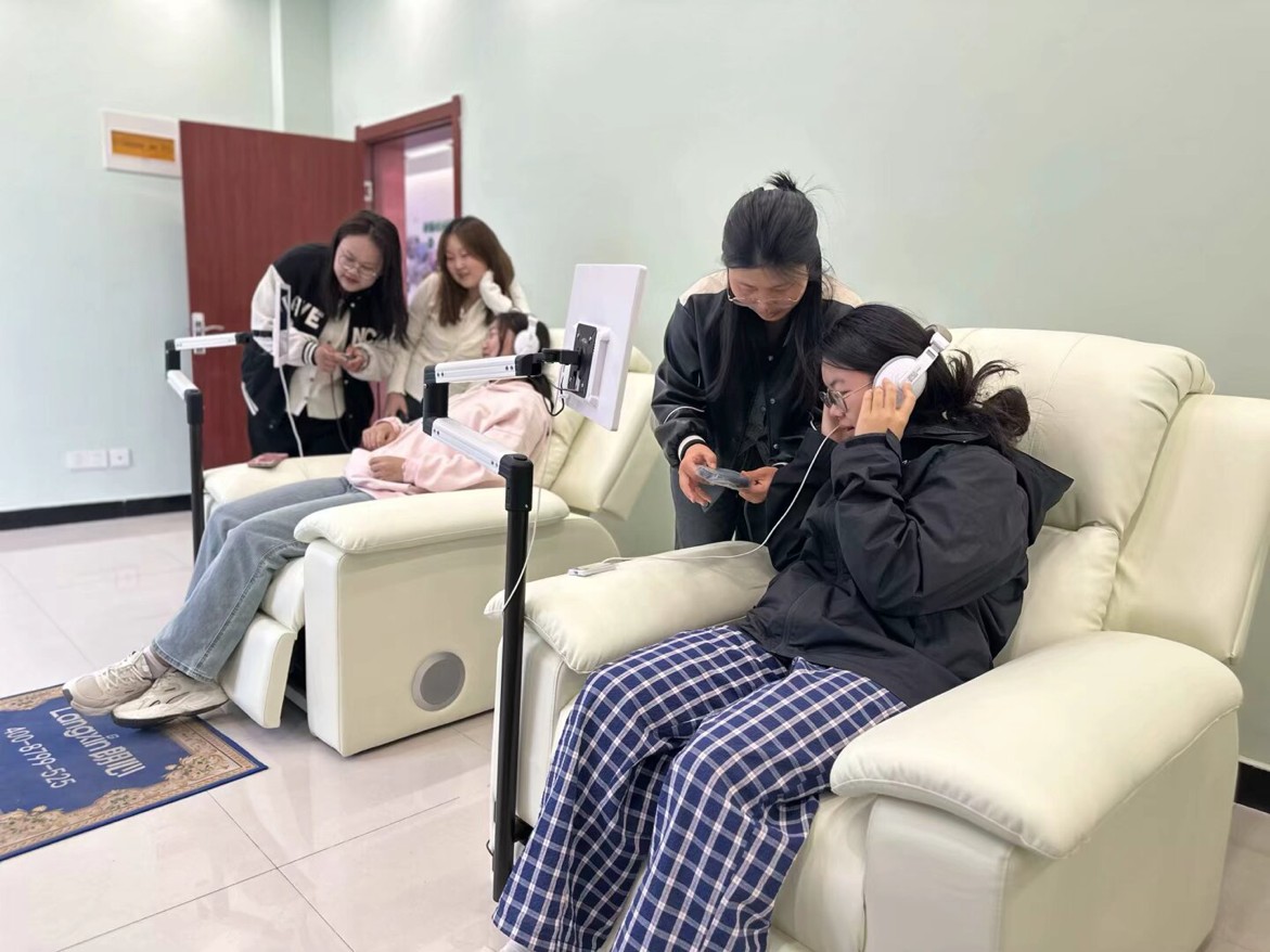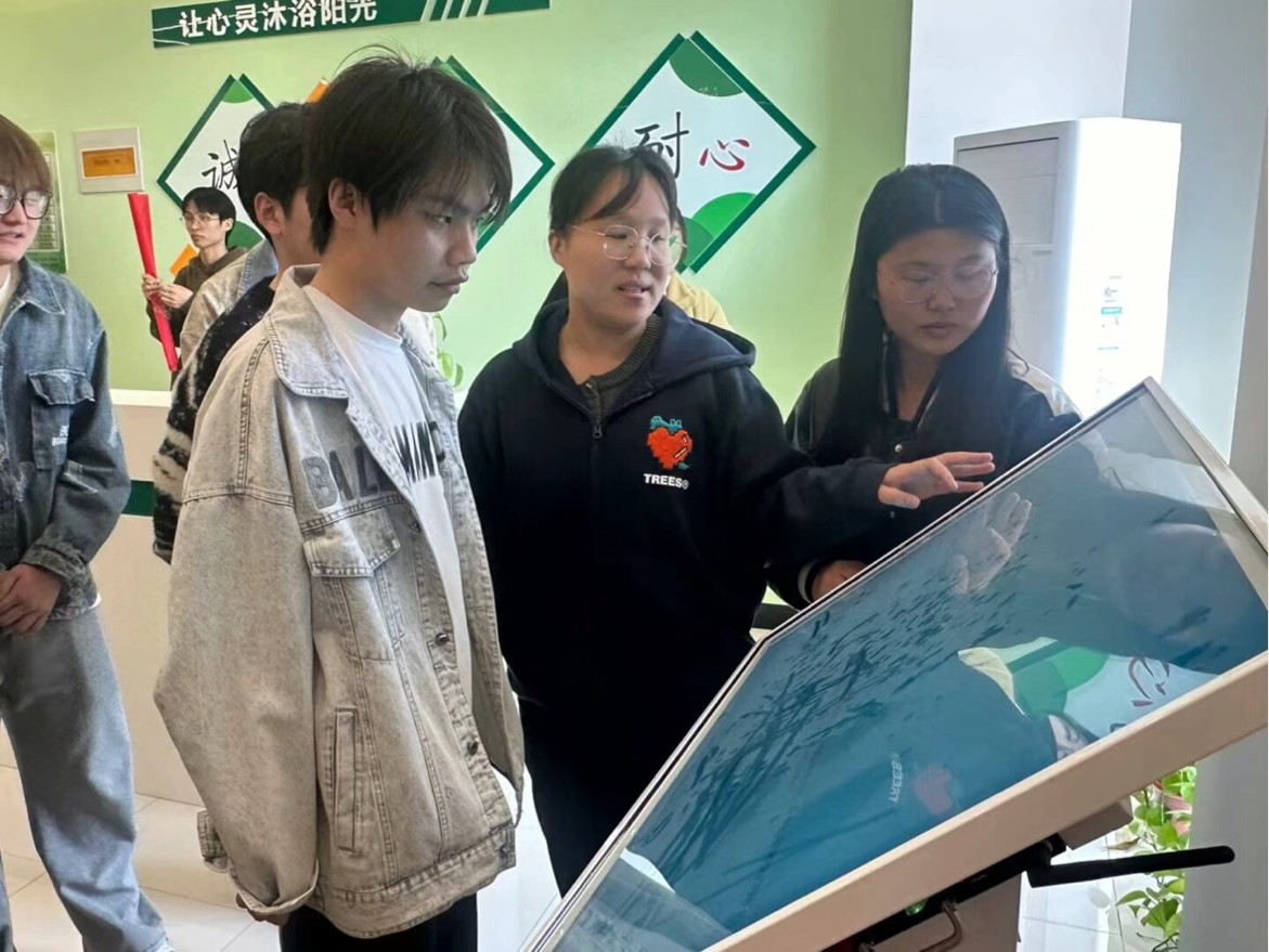 随后,带领同学们参观了各个中心功能室,包括心理沙盘室、个体心理咨询室、团体活动室、情绪宣泄室等。每组同学均有序体验了各个功能室的相关功能,同学们放松身心投入其中,与小组成员积极互动,欣赏学生作品,参与活动创作。