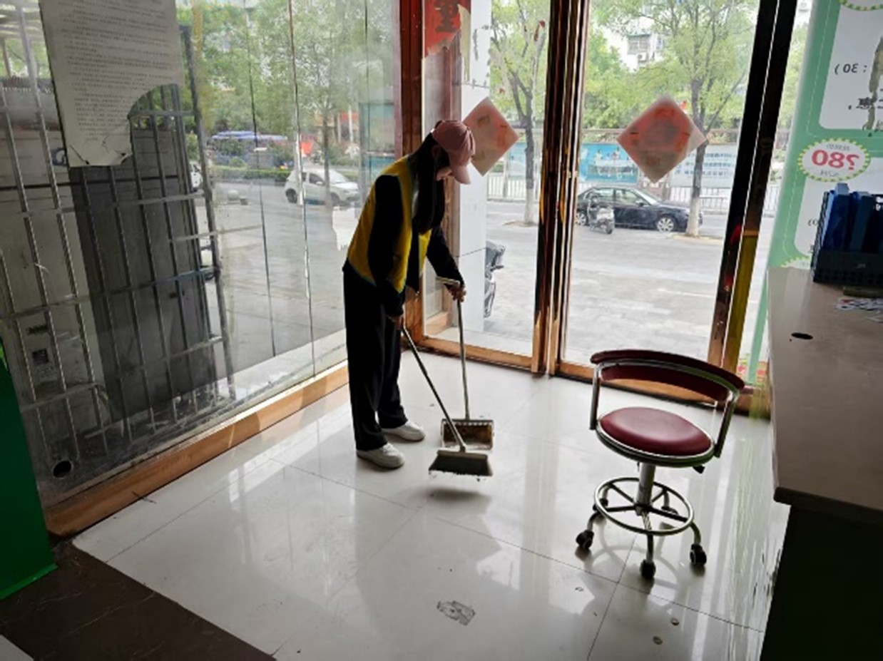 在社区服务中心,我的首要任务是社区内部卫生维护。手持清洁工具,我从擦拭办公桌椅的每一处边角开始,再到细致清扫地面缝隙里的杂物。尽管服务空间不大,但“小环境”里藏着“大民生”,唯有不放过任何卫生死角,才能为社区工作人员和居民营造整洁舒适的办事、活动环境。当最后一抹灰尘被清理干净,看着窗明几净的空间,一股实实在在的满足感从心底升起——这是亲手创造价值的直观收获。